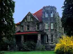 There is a castle in Blossburg, Pa., on US Rt. 15, with a wonderfully crenelated tower that used to sport a cannon, and all brown stone construction.